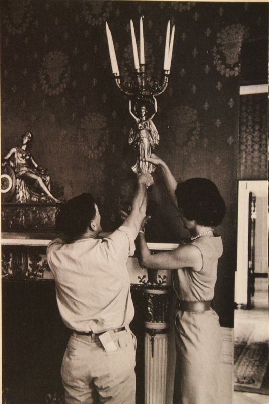 Jackie Kennedy helping the refurbishers put up a candelabra