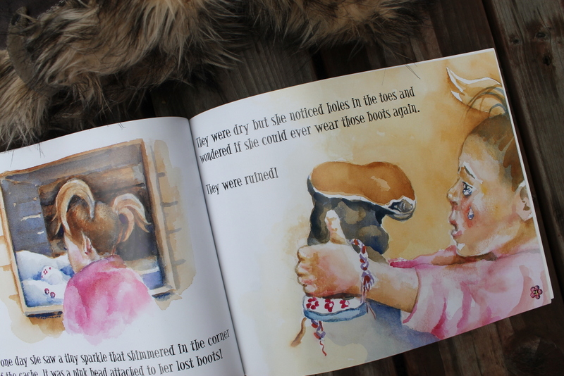 But when the boots get wet in the spring, Chelsea throws them in a cache to hopefully let them dry out before anyone sees that they are wet. Except little creatures find her boots before Chelsea remembers to come back to get them.